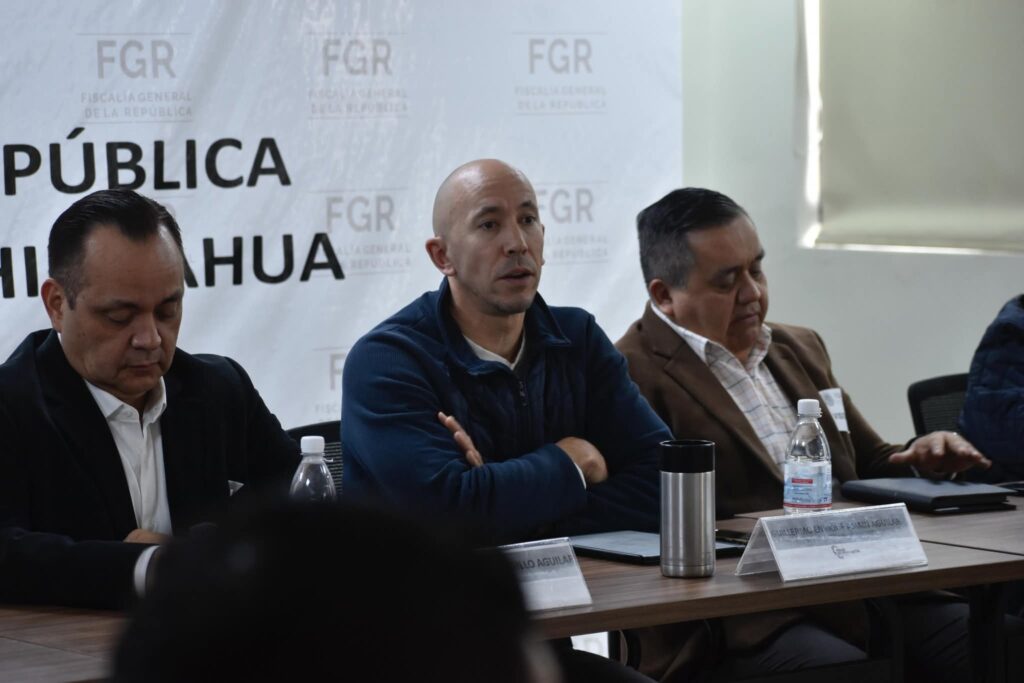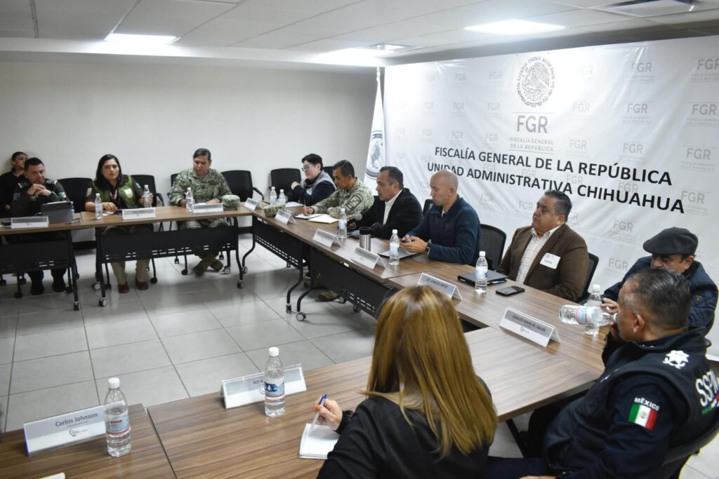 Autoridades de los tres órdenes de gobierno y representantes ciudadanos participaron en una nueva sesión plenaria de la Mesa de Seguridad y Justicia, realizada en las instalaciones de la Unidad Administrativa Chihuahua de la Fiscalía General de la República.