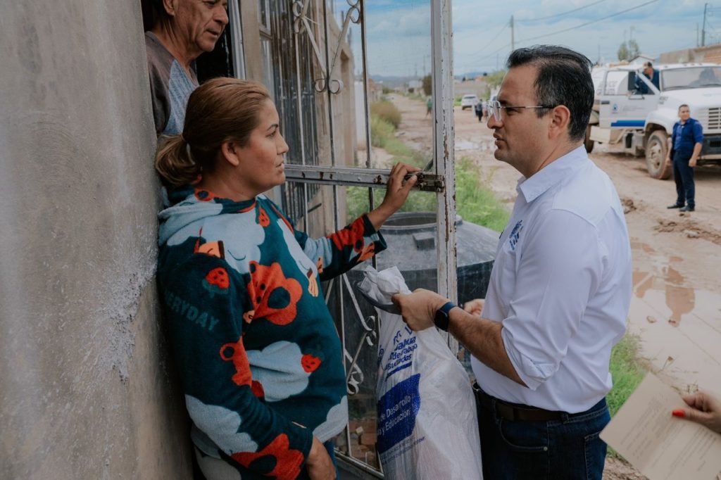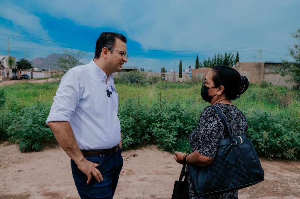 El alcalde de Chihuahua, Marco Bonilla Mendoza, hizo un recorrido por las calles de la colonia Valle Dorado para detectar las zonas que se han visto más afectadas por las lluvias y platicar de manera directa con los vecinos para buscar soluciones a sus necesidades.