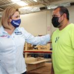 En la primera parte de su visita, la panista recorrió las líneas de producción y preparación de la madera, en donde pudo saludar a las mujeres y hombres que laboran en la planta, así como conocer de fondo el proceso que se lleva a cabo para llevar la madera a su destino final.