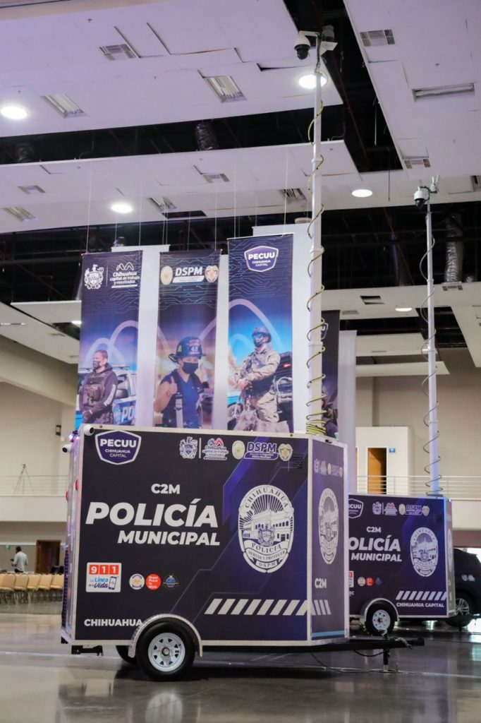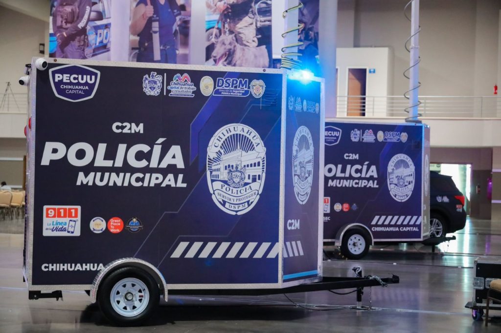 Como parte de la renovación de la Plataforma Escudo Chihuahua Capital III de la Policía Municipal, ahora los agentes cuentan con un refuerzo tecnológico para las acciones de videovigilancia, con la llegada de 10 nuevos remolques que ayudan en el despliegue operativo en tierra y aire para la a la inhibición de delitos.