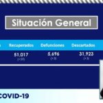 El doctor Valenzuela indicó que hay 31 mil 923 (+3) casos descarados, mil 675 (+22) sospechosos y 51 mil 017 (+59) personas que se han recuperado de la enfermedad.