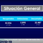 La doctora Ruiz indicó que hay 32 mil 487 (+12) casos descartados, mil 813 (-37) casos sospechosos y 52 mil 036 personas que se han recuperado de la enfermedad.
