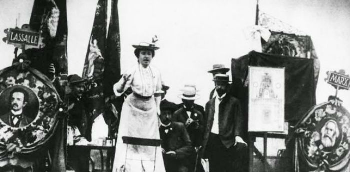 Rosa Luxemburgo en un mítin en Berlín, 1910. Foto: eldiario.es