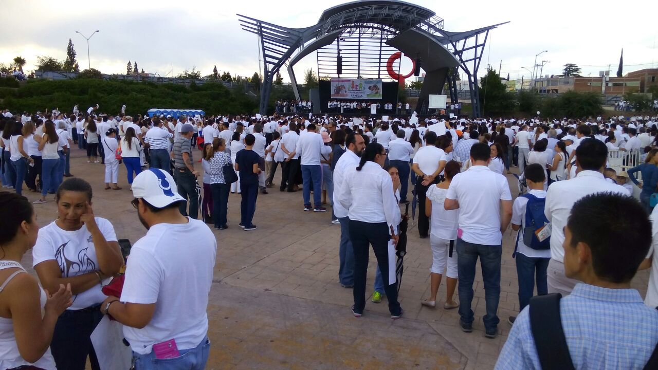 Fue en punto de las seis de la tarde que ciudadanos a fines a la organización se dieron cita en mencionado lugar, portando playeras color blanco pues así lo solicitaron los organizadores.