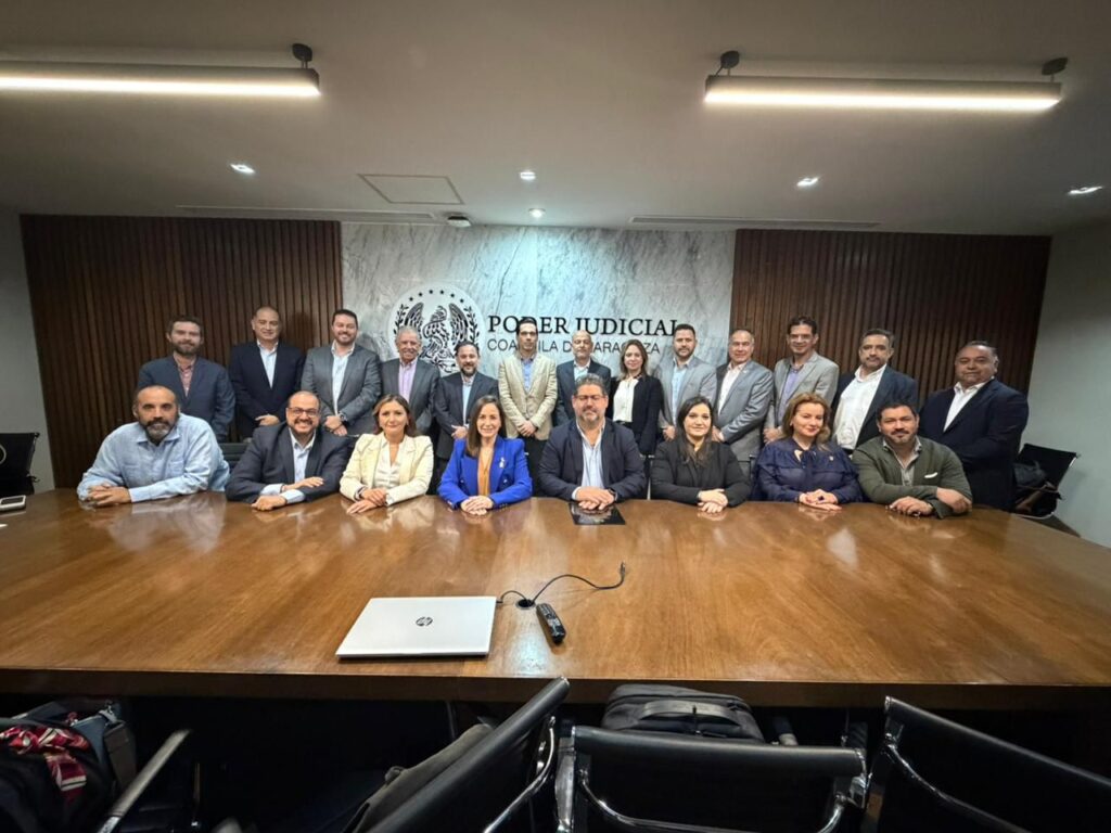 La jornada incluyó una presentación en el Palacio de Justicia de Saltillo, donde el Mtro. José Manuel Gil Navarro, Coordinador del Órgano de Administración Judicial, y el Mtro. Rodrigo González Morales, Secretario Técnico y de Planeación del Tribunal, expusieron los avances del Modelo de Gestión Judicial de Coahuila.