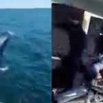 En redes sociales el video del espeluznante momento en que un tiburón se sube al barco de unos pescadores se esta haciendo viral.
