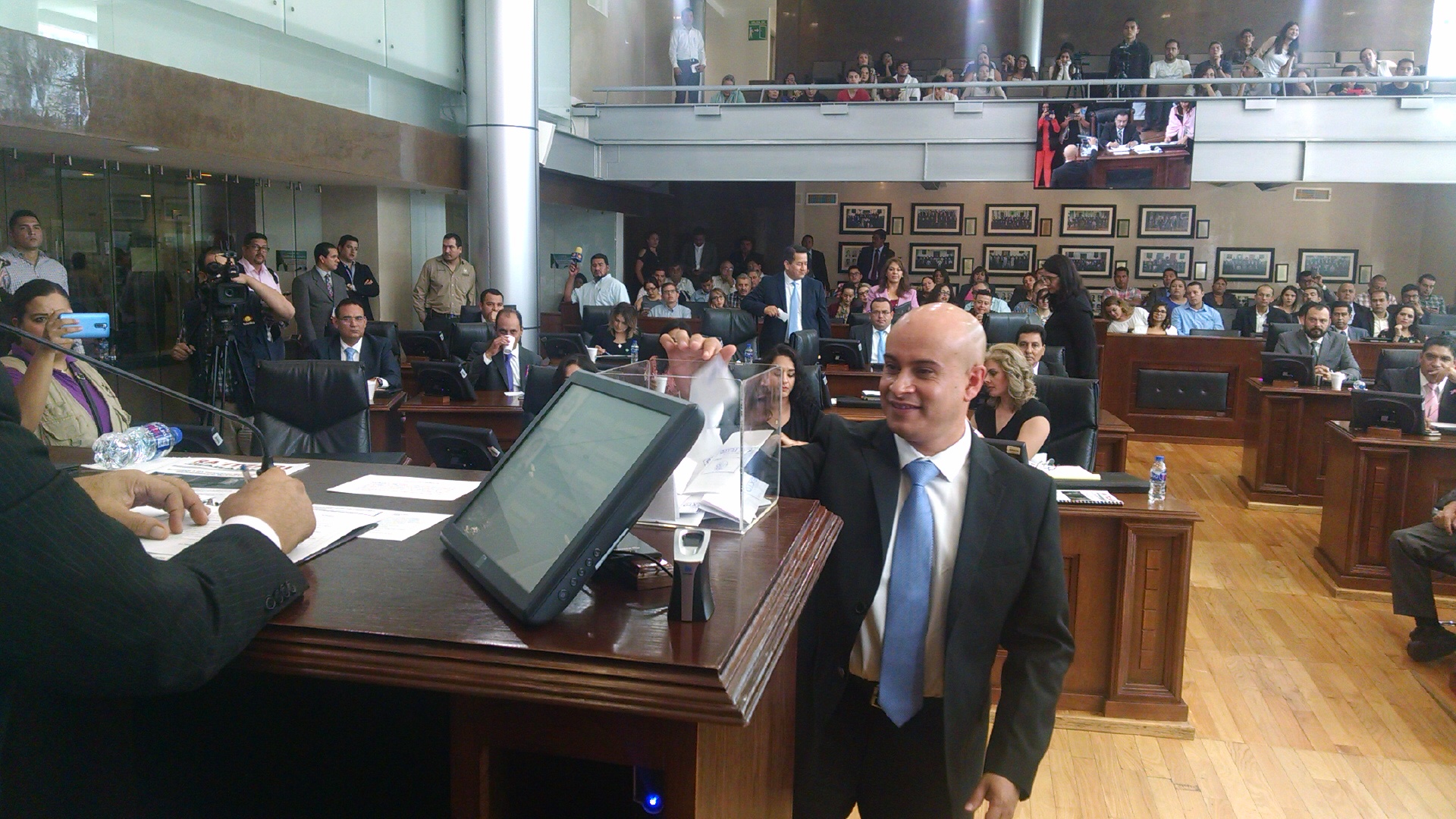 Así pues, al escuchar su nombre, uno a uno los diputados pasaron al frente en el área de los secretarios, donde depositaron la cédula que les fue entregada para plasmar su voto de manera secreta.