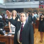 Posteriormente se le invitó a pasar al pleno a fin de que rindiera la protesta de ley correspondiente, convirtiéndose así en el Fiscal General del Estado.