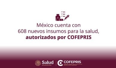 La Comisión Federal para la Protección contra Riesgos Sanitarios (COFEPRIS) informa sobre la autorización de 608 insumos para la salud, entre los que se encuentran ensayos clínicos, medicamentos y dispositivos médicos, durante el primer trimestre de 2026.