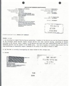 En un documento, clasificado enviado por el embajador estadounidense en México, Ken Salazar, a la DEA, el Departamento del Tesoro, el Departamento de Justicia y la Homeland Security, donde se señala que el Cartel del Noreste financió la campaña electoral del gobernador electo del estado de Tamaulipas, Américo Villarreal Anaya.