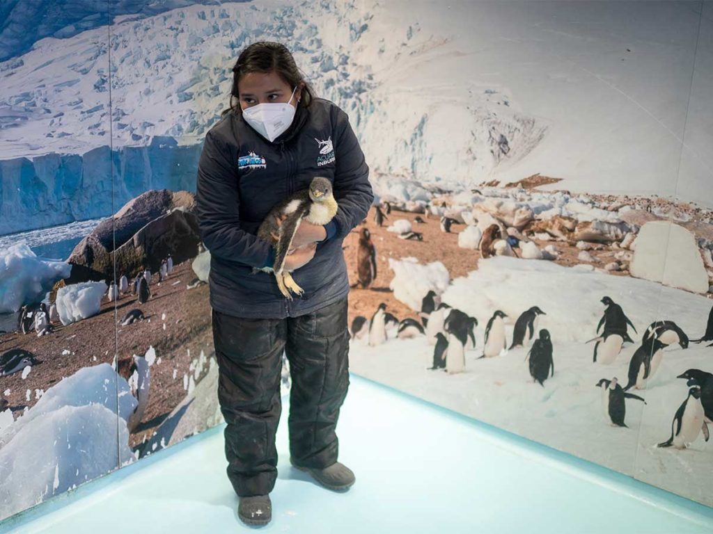 Andrés Flores, jefe de entrenadores y bienestar animal del acuario, describe al más pequeño de esta colonia de aves como “curioso, juguetón, noble y muy temperamental”.