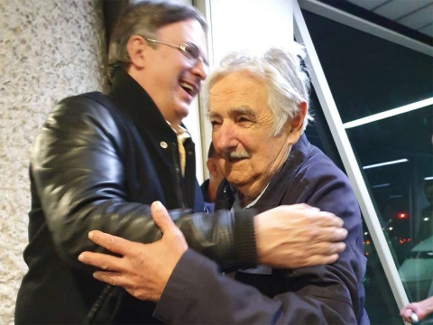 “Bienvenido José Mujica a México. El expresidente de Uruguay se encuentra de visita para asistir al evento del primer año de gobierno del presidente @lopezobrador_”, señaló el canciller en la cuenta de Twitter @SRE_mx.