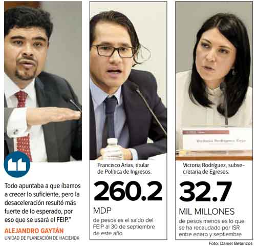Debido a ello, estimaron que durante todo 2019 se deberá echar mano de 150 mil millones de pesos del Fondo de Estabilización de Ingresos Presupuestarios (FEIP), para compensar los menores ingresos tributarios, es decir, que se usarán poco más de la mitad de los recursos de dicho fondo, para amortiguar la caída de ingresos presupuestarios.