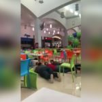 En un video que se dio a conocer en redes sociales se puede observar cómo la gente corre despavorida hacia el interior en busca de protección.