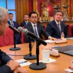 Oficializó el acuerdo mediante un mensaje difundido en redes sociales, donde aparece en compañía de los banqueros en un salón de Palacio Nacional.