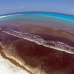 Imágenes aéreas de las playas de Riviera Cancún, Bahía Petempich, Playa Paraíso, Punta Maroma y Puerto Aventuras, en la zona centro del estado, muestran que el alga ya cubre la línea de costa.