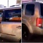 El video evidencia que el can no se mueve. Al cuestionar a la mujer, ésta responde no se había percatado de que el animal venía sujetado a la camioneta.