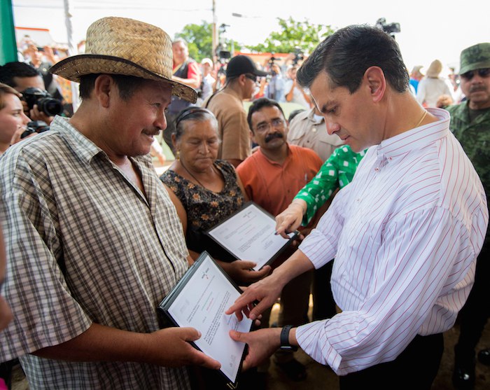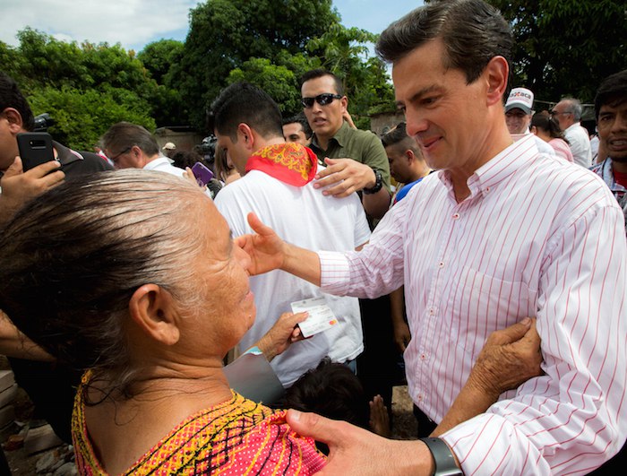 El Presidente Enrique Peña Nieto comenzó ayer, en Asunción Ixtaltepec, Oaxaca, la entrega de dinero del Fonden a damnificados por el sismo del pasado 7 de septiembre en esa entidad. Fotos: Presidencia de la República