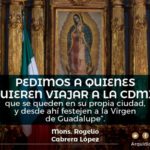 Desde el semanario Desde la Fe, la jerarquía católica en la capital del país demandó a los mexicanos tener en cuenta que la pandemia por coronavirus es “muy peligrosa” para las peregrinaciones y por ello no es posible celebrar a la Señora del Tepeyac como se acostumbra.