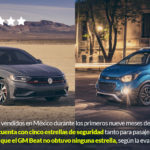Únicamente el VW Jetta 2020 cuenta con cinco estrellas tanto para pasajeros adultos como infantiles, mientras que el GM Beat no obtuvo ninguna estrella para ningún tipo de pasajeros.