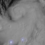 “La tormenta tropical ‘Delta’ se ve a través de la banda visible 2 del satélite, con relámpagos superpuestos del Geostationary Lightning Mapper”, detalló.