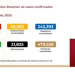Asimismo señaló que hay 56 mil 590 casos sospechosos acumulados; 35 mil 875 sospechosos activos; 242 mil 393 casos negativos acumulados y un total de 479 mil 528 personas que han sido estudiadas.