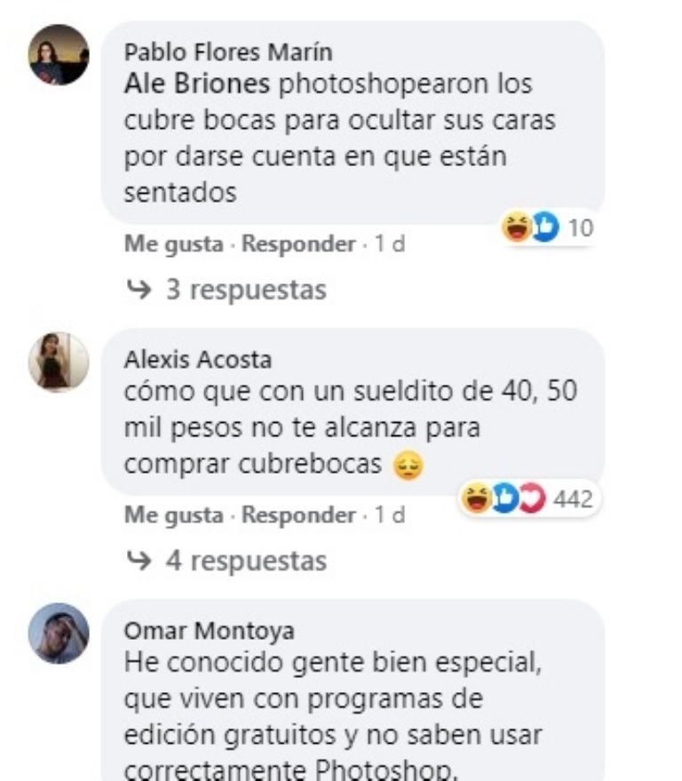 Lo que más llamó la atención y no pasó desapercibido para los usuarios de redes fue que la foto está editada, ya que se ve claramente su edición para ponerle a las 9 personas que aparecen sin cubrebocas.