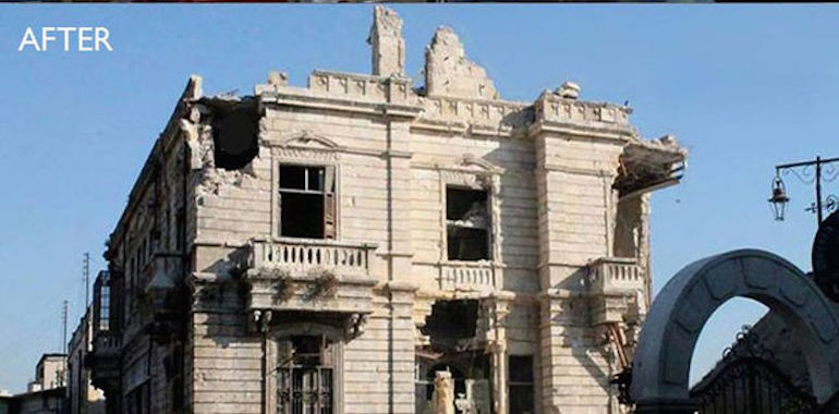 Un restaurante de Alepo ha recogido algunas fotografías que muestran el antes y después de varios enclaves tras sufrir años de combates. Esta ciudad siria era la más poblada del país y era un importante destino turístico antes del estallido del conflicto.