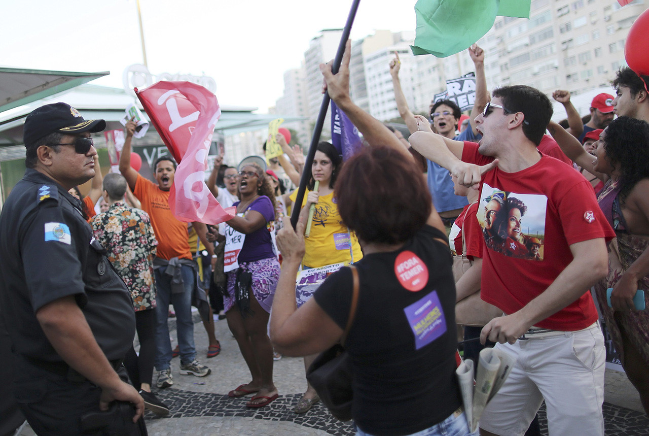 Molestos por la corrupción, los partidarios de Dilma Rousseff, presidenta depuesta de la nación, se reunieron la mañana de este viernes en frente del Hotel Palacio de Copacabana, donde se hospedan algunos atletas, con carteles que decían “Fora Temer” y “Temer Out” (“Fuera Temer”).