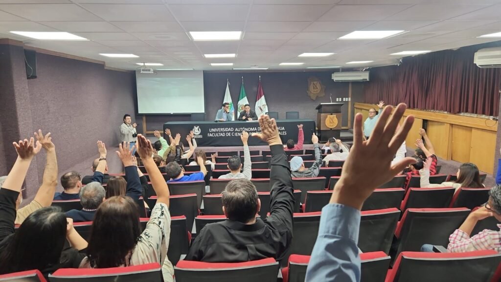 La Facultad de Ciencias Políticas y Sociales llevó a cabo el pasado jueves la elección de su Consejo Técnico y del consejero universitario para el periodo 2026-2027, en un proceso desarrollado en los campus de Ciudad Juárez y Chihuahua. Durante la sesión se verificó la existencia de quórum legal, lo que permitió validar formalmente la jornada electoral.