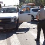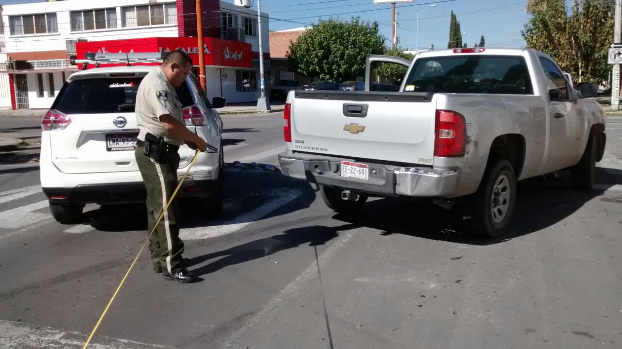 Minutos después de que agentes de la Fiscalía General del Estado atropellaron y dejaron grave a un adulto mayor en la avenida Tecnológico, otros elementos ministeriales chocaron la pick up oficial en el cruce de las calles 27 y Riva Palacio.