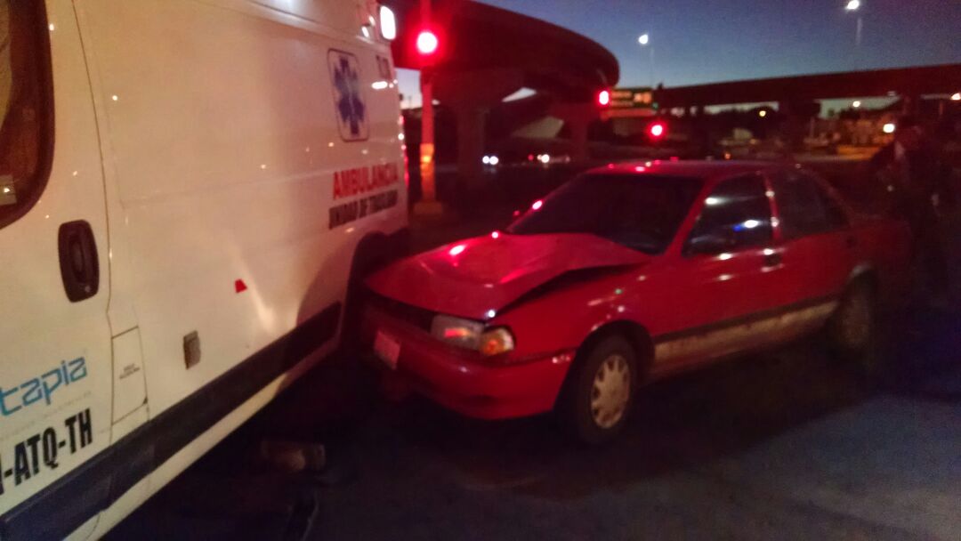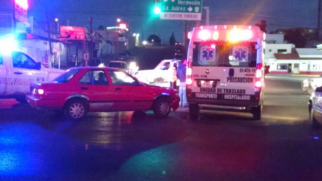 Los involucrados son una ambulancia particular y un vehículo Nissan Tsuru, cuyo conductor tenía vía libre cuando circulaba de oeste a este sobre la avenida Silvestre Terrazas.