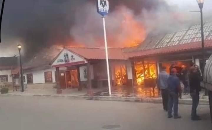 Un voraz incendio consumió un conocido negocio en la zona centro de Creel, municipio de Bocoyna.