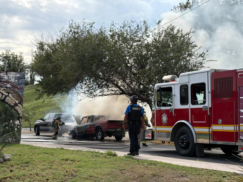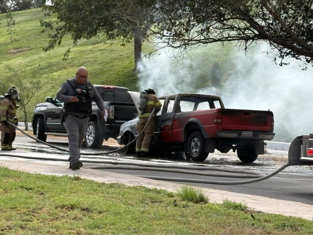 Asimismo, y debido a que el conductor de la Ranger se orilló al comenzar el fuego, el calor dañó a una pick up GMC Sierra que estaba estacionada.