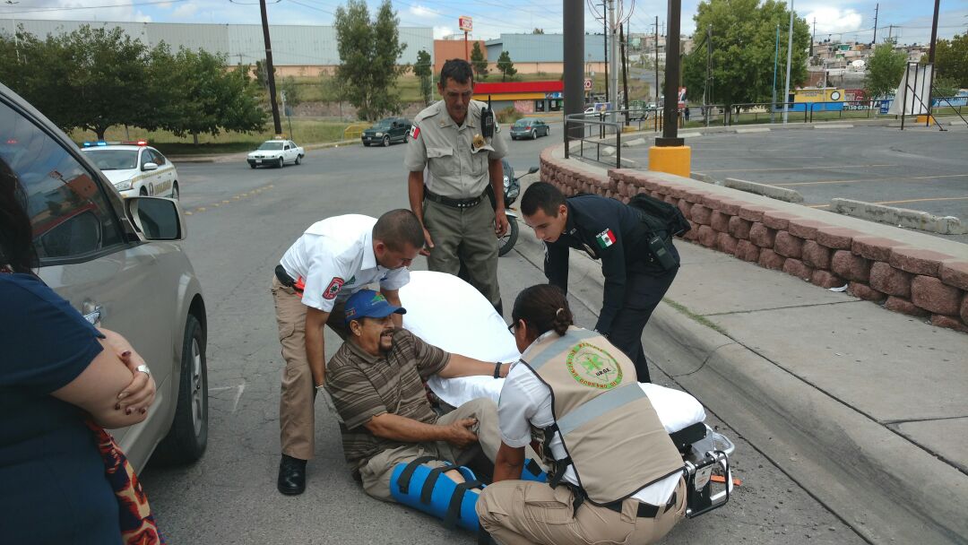Un señor de aproximadamente 60 años fue arrollado por un conductor de un Nissan Quest y quedó tendido en la cinta asfáltica con la pierna fracturada.