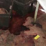 Asimismo, se localizó una báscula, refrigeradores con carne y pollo, rastros hemáticos en todo el lugar, sin medidas de sanidad.