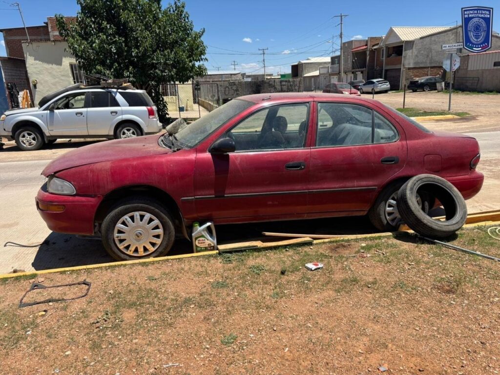 El tercer vehículo asegurado es un Geo Prizm, modelo 1997, con placas de circulación del estado de Chihuahua, que fue localizado en las calles Alcaldes e Ignacio Romo Anguiano de colonia Los Alcaldes, el cual tenía denuncia por abuso de confianza.