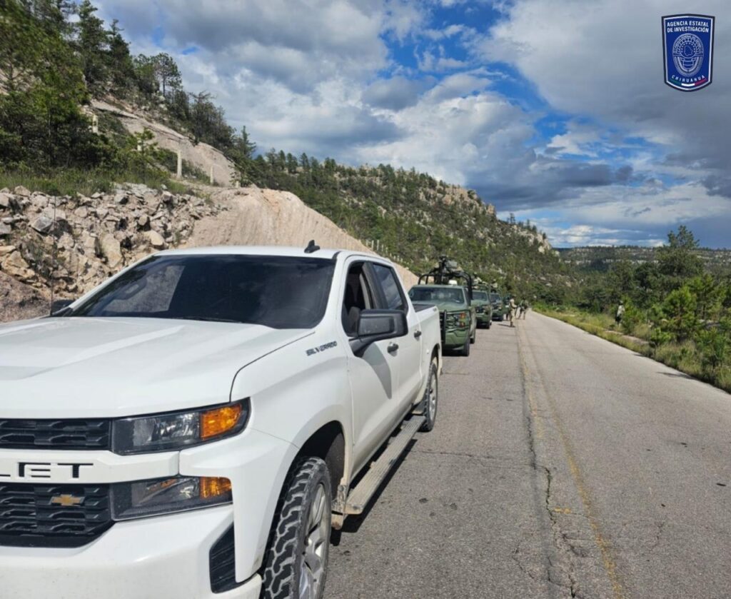 Mientras que, en una brecha que conduce de esa misma localidad al poblado de Sisoguichi, encontraron un vehículo abandonado de la marca Ford, línea Ranger, modelo 1994, color blanco, que contaba con reporte de robo interpuesto 04 de noviembre del año 2024, en el municipio de Cuauhtémoc.