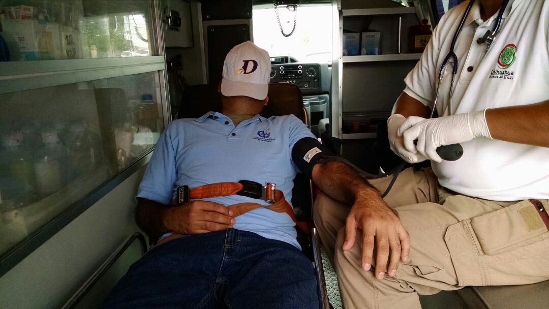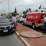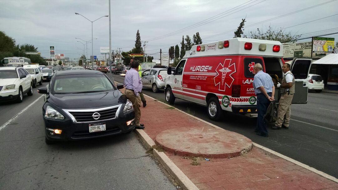 Un hombre de 40 años con el uniforme del Instituto Tecnológico de Chihuahua, fue alcanzado por un auto Nissan. El hombre tuvo que ser trasladado a un hospital por una ambulancia URGE.