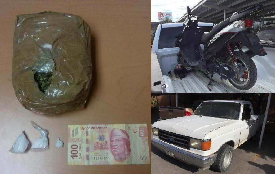 Asimismo, se aseguró una pick up Ford blanca modelo 1988, en la cual se localizó el paquete de marihuana, así como una motocicleta Itálica en la que se trasladaba uno de los imputados.