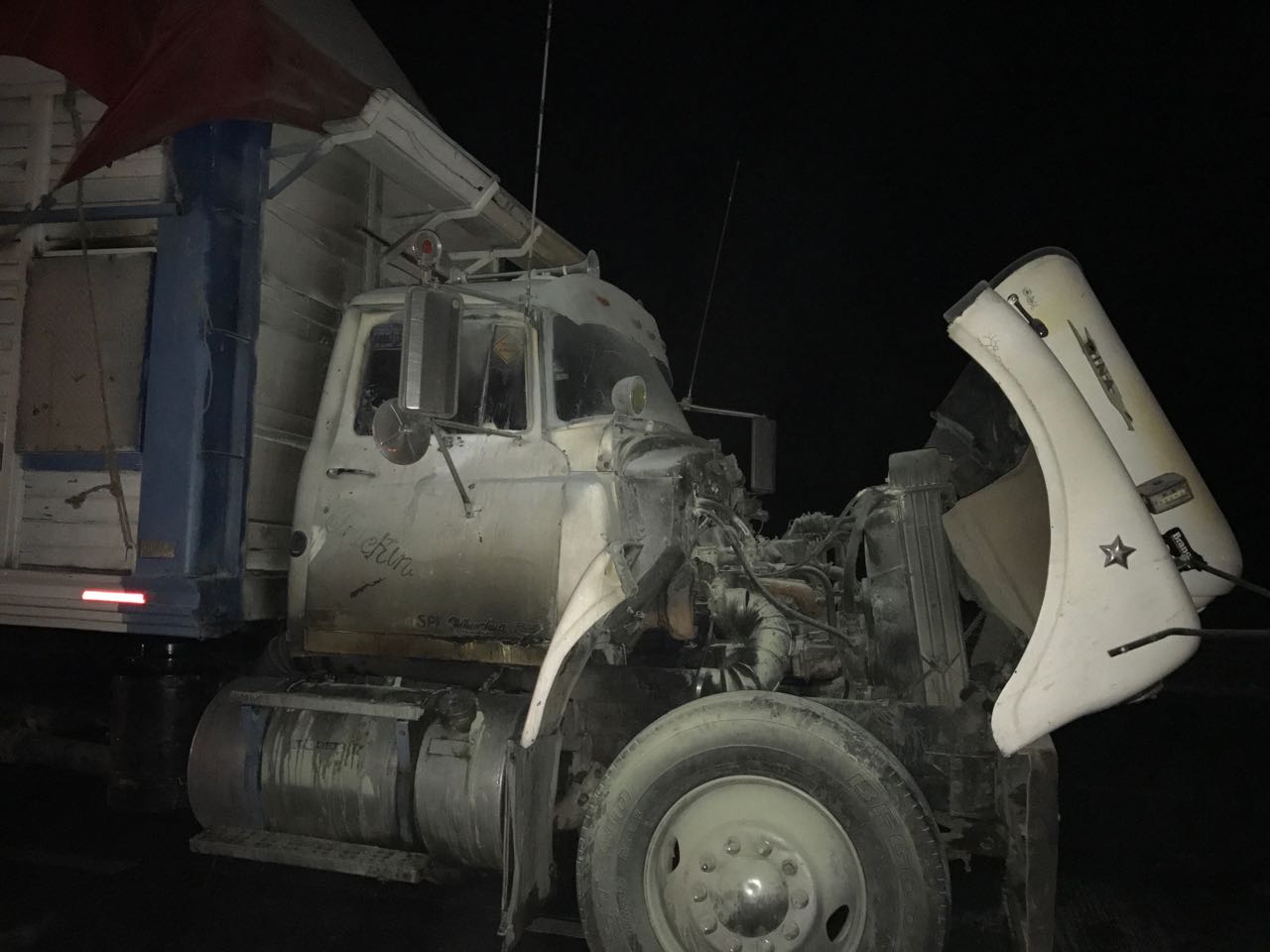 El camión de la marca Dina transportaba cascarilla de algodón de Moctezuma a Chihuahua, cuando sufrió una falla mecánica.