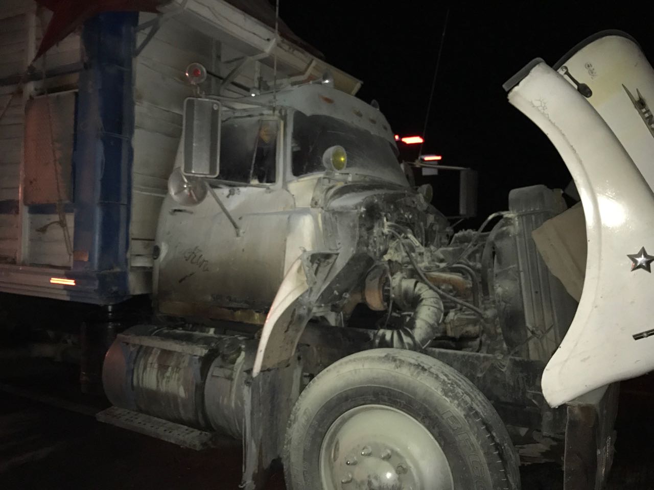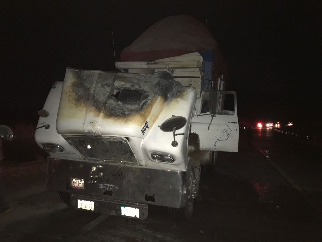 Elementos del Cuerpo de Bomberos lograron sofocar el fuego en el camión de carga y descartaron personas lesionadas.