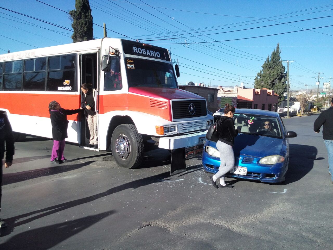 Debido al choque, dos pasajeras resultaron heridas, además de la conductora del automóvil particular.
