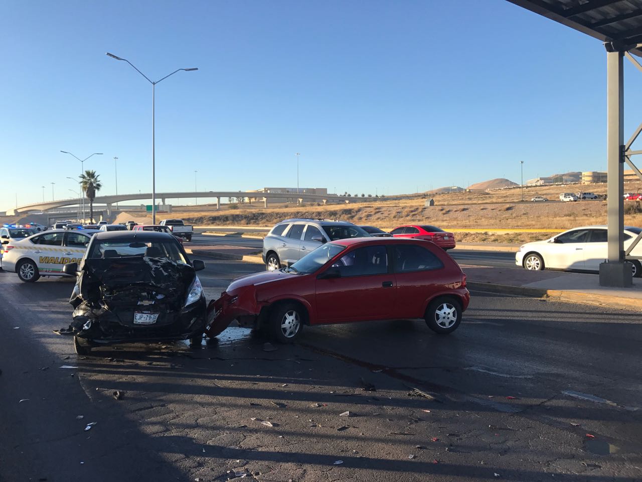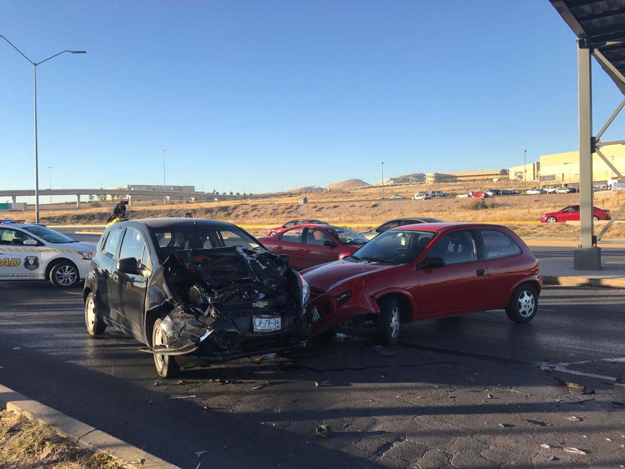 Los vehículos involucrados son un Ford Fiesta con placas EKL-4232, así como un Chevrolet Spark y un Chevrolet Chevy, cuyos conductores resultaron ilesos.