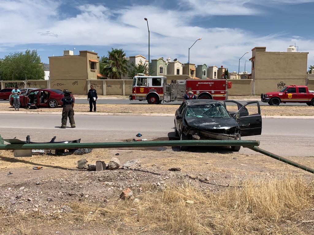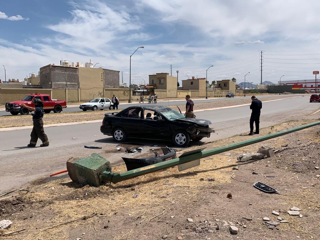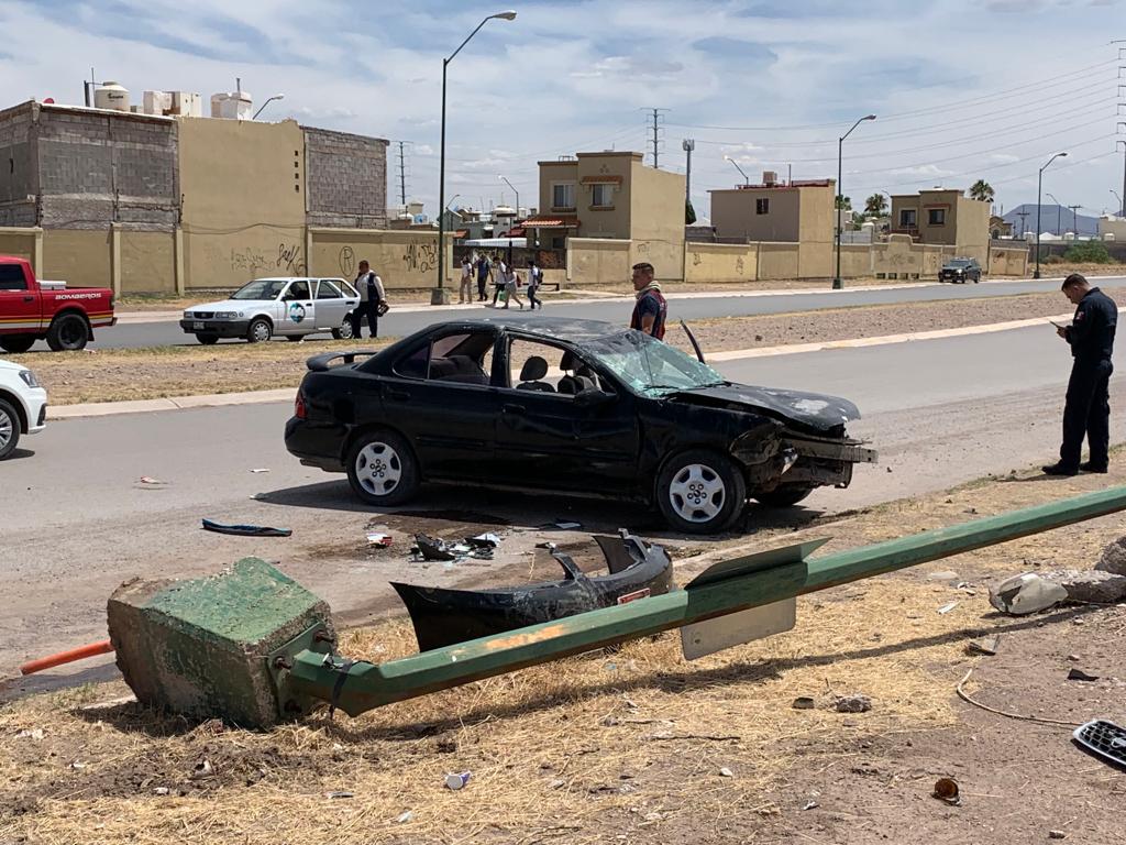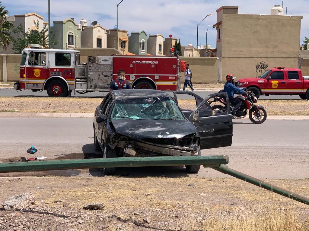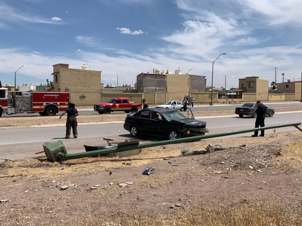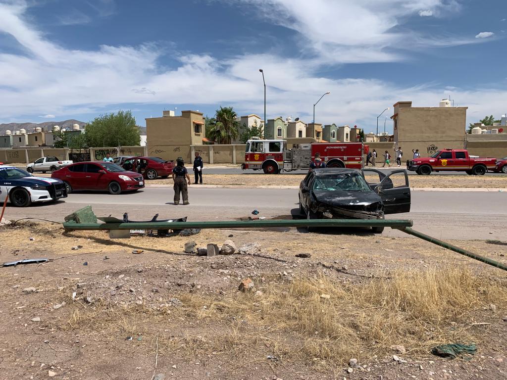 La conductora de un vehículo Nissan color negro se impactó contra un poste en la Avenida Central y Tabalaopa, justo frente al Fraccionamiento Fresnos tras el impacto resultó con una volcadura quedando nuevamente el vehículo con las llantas al piso.