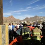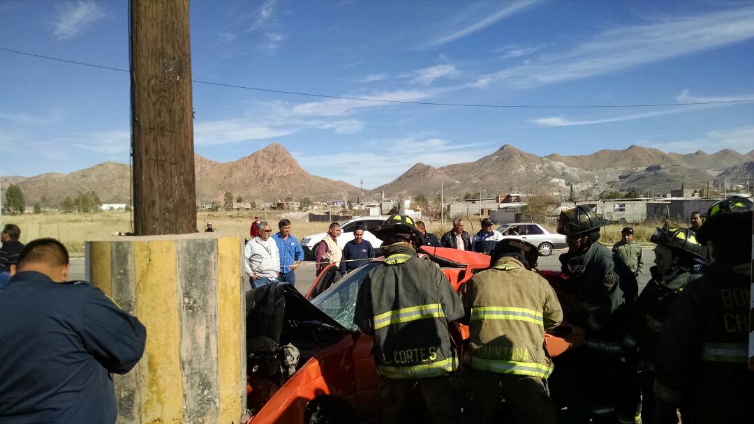 Luego de impacto, elementos del Cuerpo de Bomberos tuvieron que liberar al guiador, debido a que quedó prensado entre los fierros retorcidos del automotor.