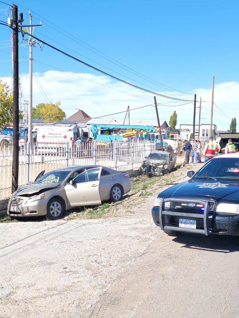 Policía Vial de Álvaro Obregón, municipio de Cuauhtémoc, atendió un choque con personas lesionadas, en incidente reportado a las 13:40 horas de este martes 2 de noviembre, en el kilómetro 27+150 del Corredor Comercial Manitoba.