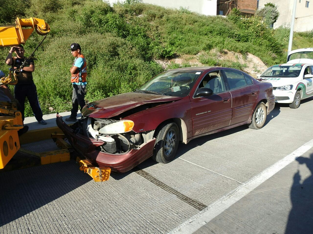 Y es que el guiador de un automóvil Pontiac Gran Am con placas EJT-5476, iba a exceso de velocidad y al perder el control también invadió el carril contrario.