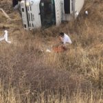 Como resultado, el camión salió del camino para luego volcar fuera de la carretera.