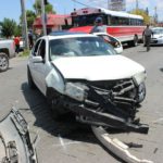 El accidente ocurrió en el cruce con la calle Tomochi, al norte de la ciudad, hasta donde se trasladaron paramédicos de Cruz Roja, quienes llevaron al hospital al guiador herido.
